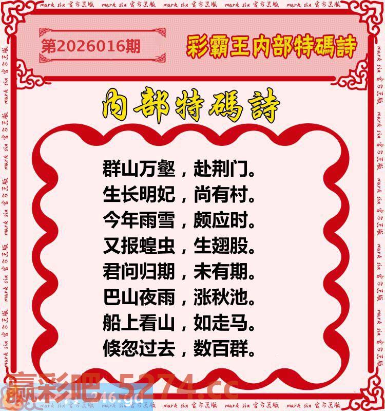 016期:彩霸王内部特码诗